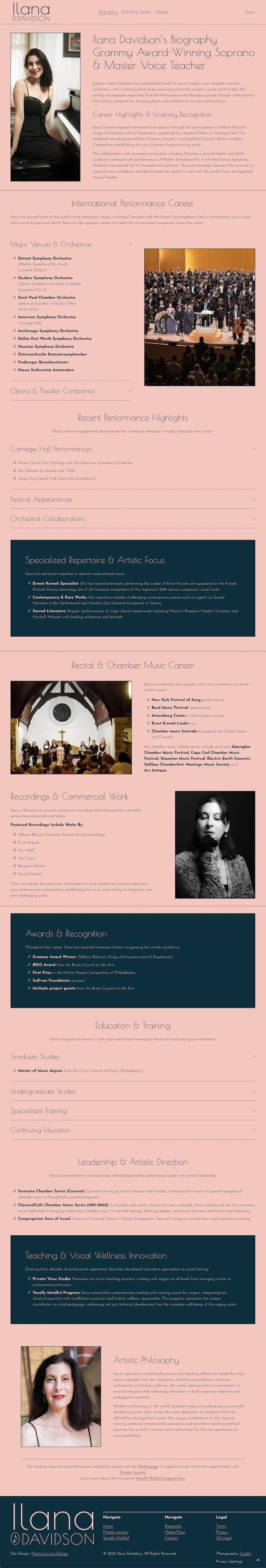 Ilana Davidson, Grammy Winning Singer Custom Website Design